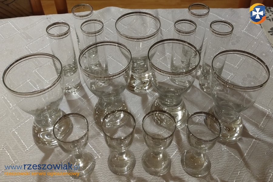 Zestaw szkła użytkowego ze srebrnym zdobieniem