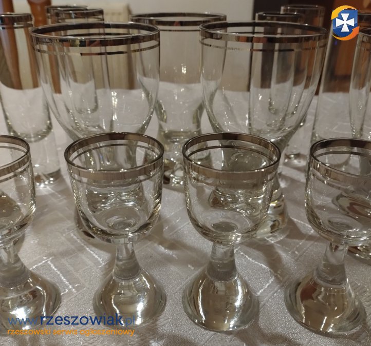 15 elementów. Bardzo ładne szkło ze srebrnym zdobieniem. Jak na zdjęciach.