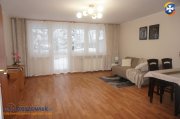 Mieszkanie jest czyste i przytulne, wyposażone w meble i sprzęty (2 nowe sofy z funkcją spania dotąd nie używane, meblościanka w salonie i w sypialni, stół oraz 4 krzesła, biurko i krzesło do niego, meble kuchenne, kuchenka elektryczna wraz z piekarnikiem, lodówka, kuchenka mikrofalowa, pralka, czajnik elektryczny, szafa w przedpokoju oraz wieszaki, talerze, sztućce, garnki, odkurzacz, deska do prasowania, żelazko, mop z wiadrem). We wszystkich oknach rolety zewnętrzne antywłamaniowe otwierane ręcznie (na sznurek).
