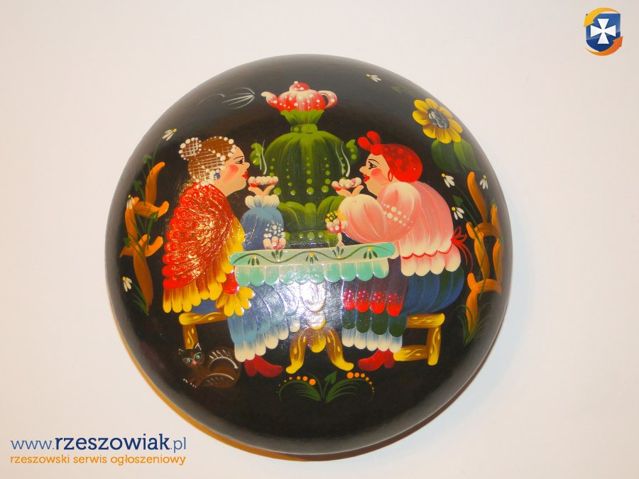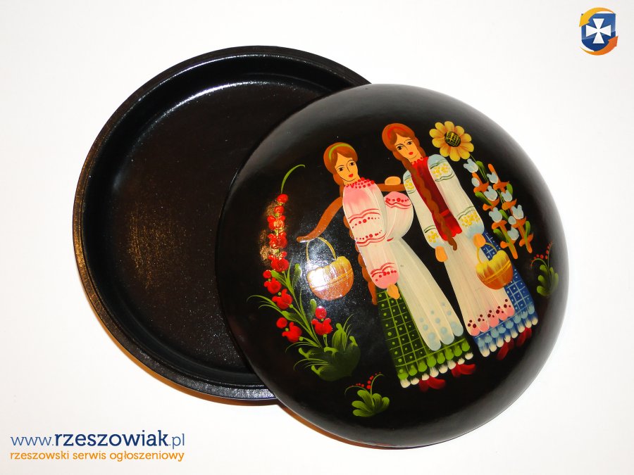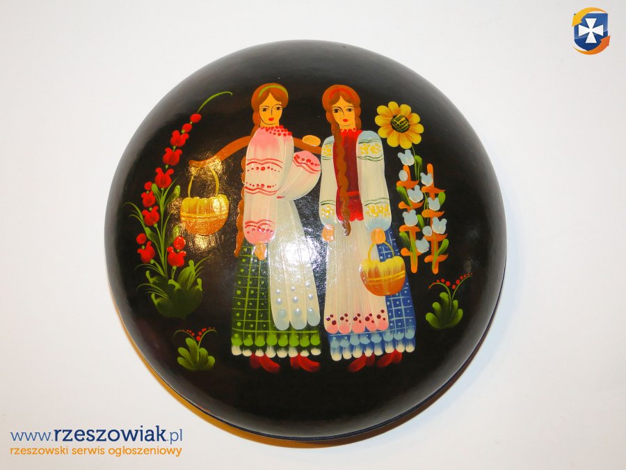 2 x szkatułki drewniane ręcznie pięknie pomalowane- stan bdb. średnica 17 cm.