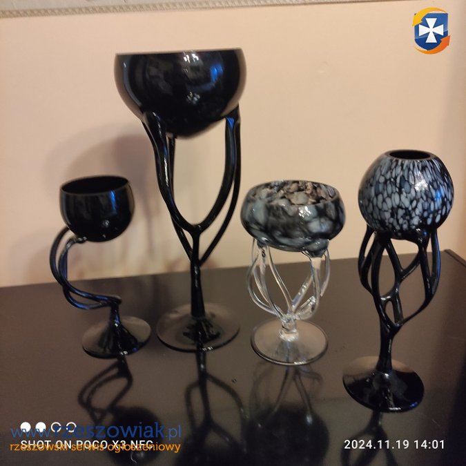 4 x szkło ozdobne do witryny - największy wysokość - 29 najniższy 17 cm.