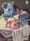 Obraz ręcznie haftowany naciągnięty na grubą dyktę,przedstawia Martwa Natura.Stan zachowania BDB. wymiary - dłg.44 x 34.