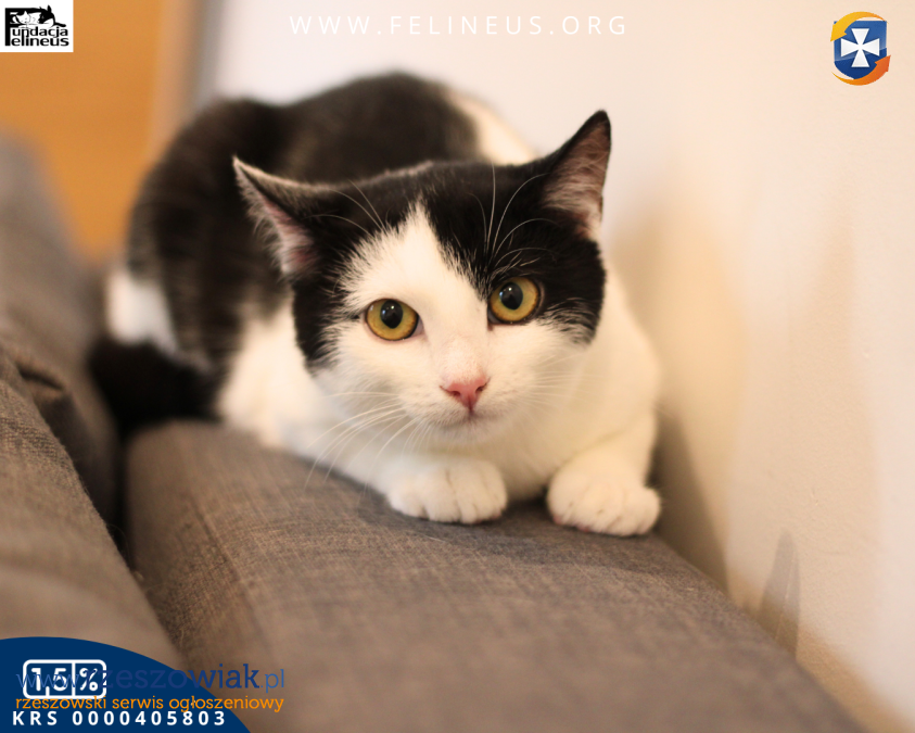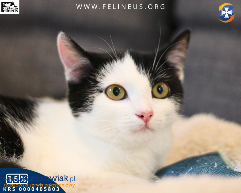 Abi to biało czarna kotka urodzona w czerwcu 2025 roku. Ponieważ miała wcześniej niewiele kontaktu z człowiekiem, jest ostrożna i troszkę nieśmiała. Potrzeba zatem ciut więcej czasu i cierpliwości aby zdobyć jej zaufanie. Abi bardzo dobrze czuje się w kocim towarzystwie, lubi zabawy wędka, piłeczkami i zabawkami z kocimiętką.