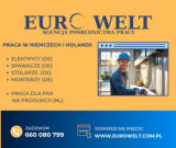 Agencja Pośrednictwa Pracy EURO WELT (KRAZ 12809) działa na rynku już od ponad 10 lat, skutecznie łącząc kandydatów z pracodawcami za granicą. Zaufanie setek zadowolonych pracowników to dla nas najlepsza rekomendacja. Zapewniamy wsparcie na każdym etapie â od aplikacji, przez wyjazd, aż po codzienne sprawy już na miejscu. Dołącz do grona osób, które za naszym pośrednictwem rozpoczęły stabilną pracę za granicą.