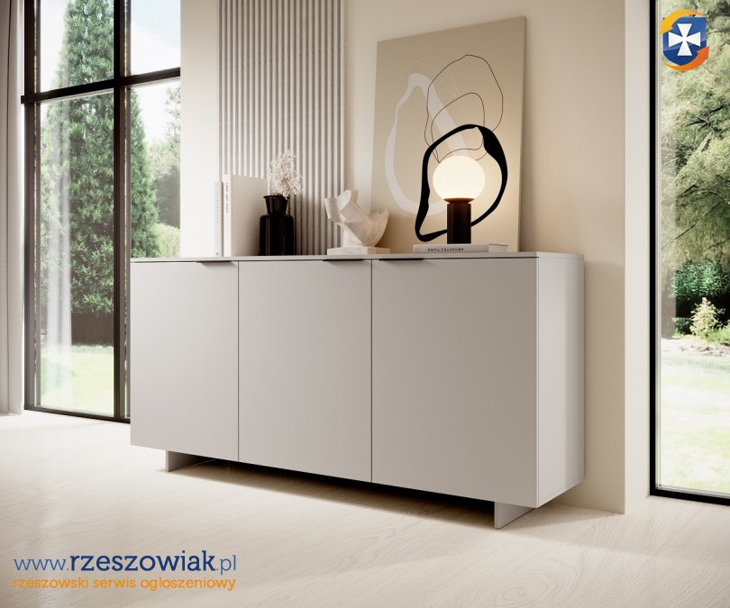 Komoda 3-drzwiowa w kolorze kaszmir to praktyczne i stylowe rozwiązanie do salonu czy jadalni.