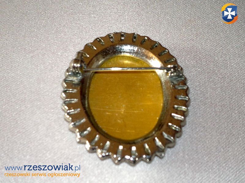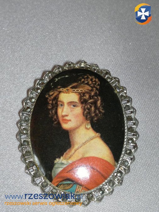 ANTYCZNA BROSZKA -MINIATURKA W OWALNEJ SREBRZONEJ RAMCE UROCZA KOBIETA DAMA ZAPIĘCIE KULKOWE DŁG.4,5 CM X 3,8 CM