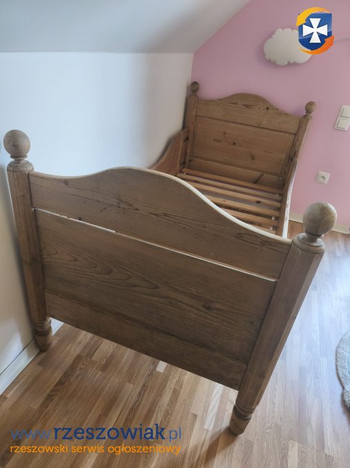 Autentyczne, oryginalne łóżko sosnowe, idealnie odrestaurowane, pozbawione korników. Posiada naturalne ślady użytkowania wynikające z długiej historii.