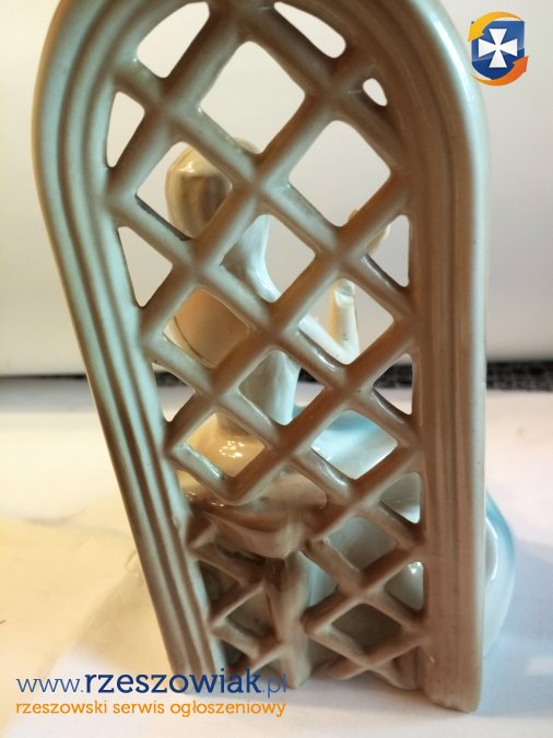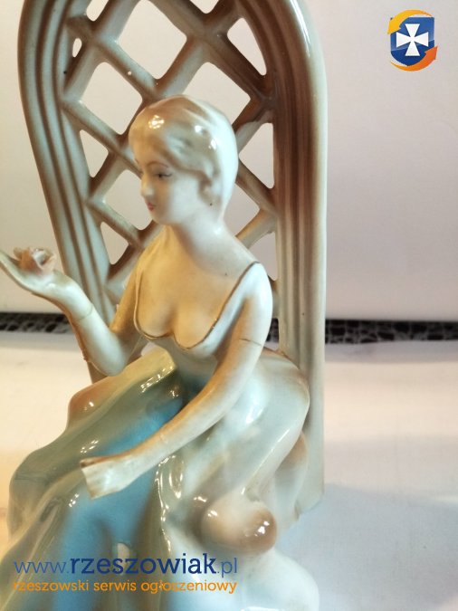 Figurka porcelana kobieta przy altance z różą