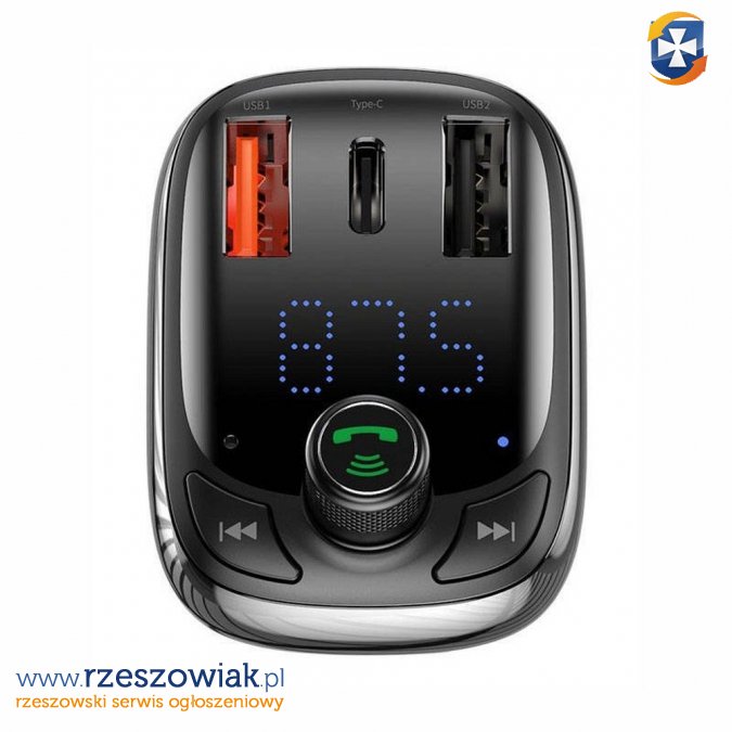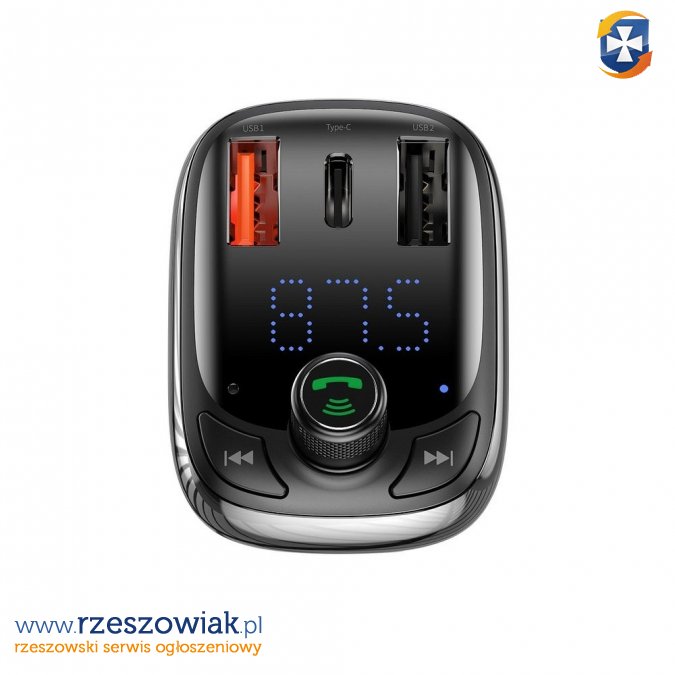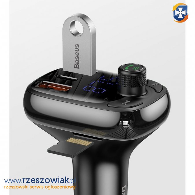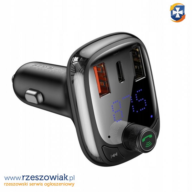 Ładowarka samochodowa Baseus wyposażona w transmiter FM. Zapewnia szybkie i bezpieczne ładowanie aż dwóch różnych urządzeń jednocześnie.
