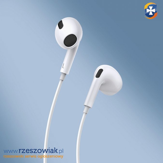 Słuchawki douszne przewodowe ze złączem mini jack 3,5 mm z mikrofonem HD. Idealne do słuchania muzyki, a także prowadzenia rozmów bez konieczności trzymania telefonu w ręku.