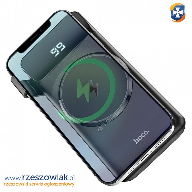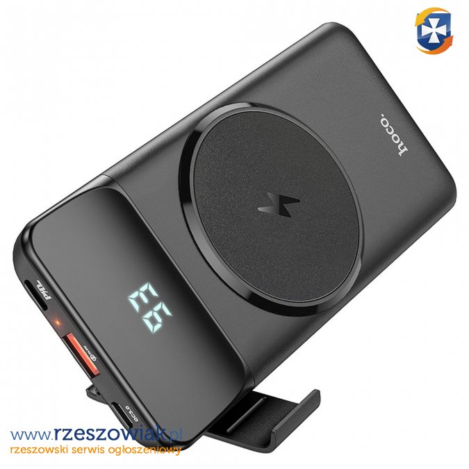 Bateria zewnętrzna ( POWER BANK ) HOCO 10 000mAh z LCD + ładowanie indukcyjne wspiera MagSafe PD22,5W + QC3.0 J76 czarny