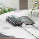 Pojemność baterii litowo-polimerowej na poziomie 10 000 mAh pozwoli Ci nawet dwukrotnie uzupełnić energię w telefonie (w zależności od pojemności jego baterii), a dzięki wykorzystanym technologiom Power Delivery (22,5 W) i Quick Charge 3.0 masz pewność, że urządzenie zostanie naładowane nie tylko bezpiecznie, ale przede wszystkim w krótkim czasie. Wykonany z wysokiej jakości poliwęglanu oraz tworzywa sztucznego ABS power bank jest wytrzymały i solidny, dlatego posłuży Ci na lata. Posiada 3 porty, w tym jeden USB-A, dzięki któremu uzupełnisz jego baterię lub podłączysz go do rozładowanego sprzętu, a także USB-C i microUSB. Dzięki temu możesz podpiąć 2 urządzenia jednocześnie, np. telefon, tablet, słuchawki czy e-papierosa. Minimalistyczna, smukła konstrukcja oraz niewielka waga sprawiają, że nadaje się do użycia w trakcie podróży, a wyświetlacz LED poinformuje Cię o poziomie naładowania power banka. Magnetyczny pierścień obsługujący MagSafe pozwala na ładowanie smartfona bezprzewodowo.