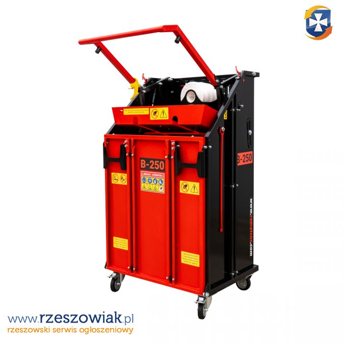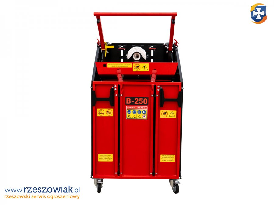 Ręczna belownica B-250 przeznaczona jest do prasowania odpadów opakowaniowych takich jak makulatura, tektura, pudełka kartonowe, ścinki papierowe, folie, worki, opakowania plastikowe itp.