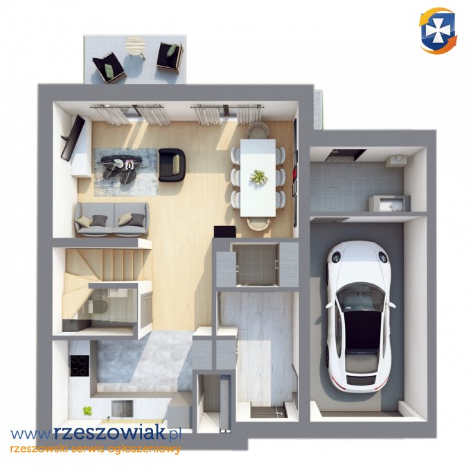 - dzięki połączeniu budynków garażem zyskujemy komfort i prywatność;