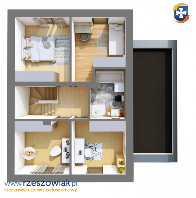 Układ piętra pozwala na dostosowanie go do własnych potrzeb, dzieląc go na 2, 3 lub 4 pokoje.