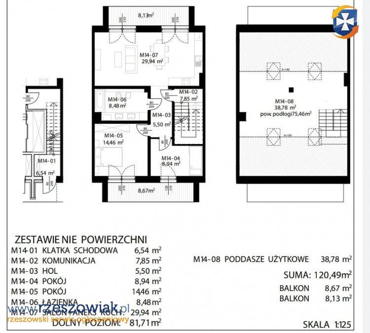 BEZ PROWIZJI !!! GODNE UWAGI !!! Do sprzedania mieszkanie w Rzeszowie - Budziwoju o powierzchni 120,49 m2 z dwoma balkonami. Mieszkanie w stanie deweloperskim. Położone na 1 piętrze + poddasze użytkowe. Budynek w zabudowie szeregowej, z odrębnym wejściem. W skład mieszkania wchodzi m.in.: 2 samodzielne pokoje, salon z aneksem kuchennym, przedpokój, łazienka z wc (razem ok.82m2) oraz poddasze użytkowe o powierzchni ok.39m2 (po podłodze ok.75m2). Dodatkowo dostępne są do mieszkania 2 miejsca postojowe!