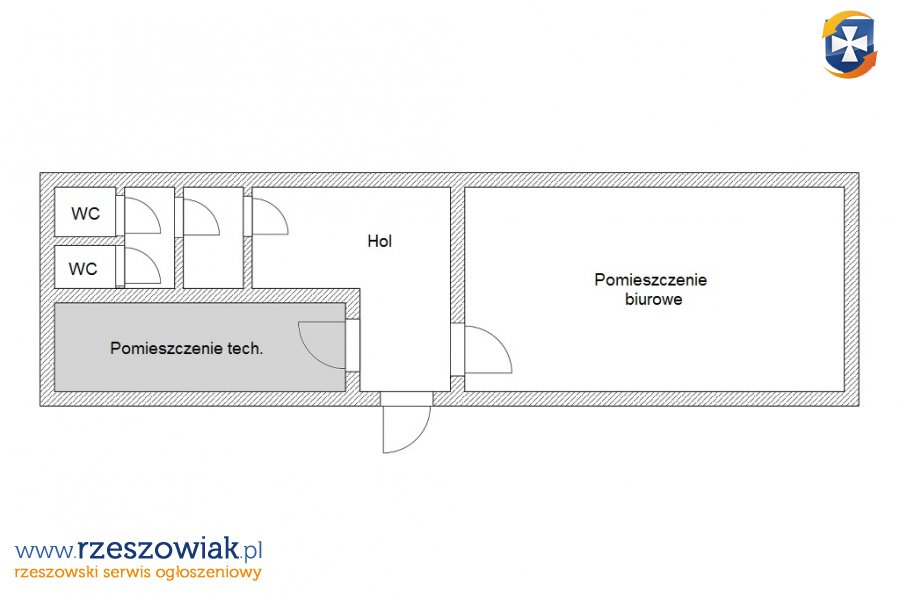Lokal znajduje się na II piętrze kamienicy. W jego skład wchodzi pomieszczenie biurowe, hol, pomieszczenie socjalne i toalety.