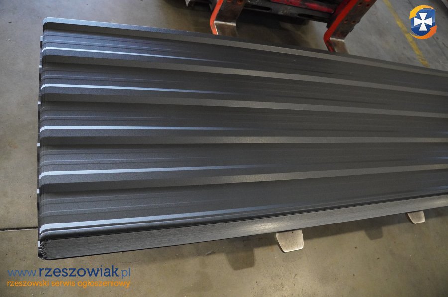 Blacha trapezowa o profilu T-18S w kolorze grafitowym.