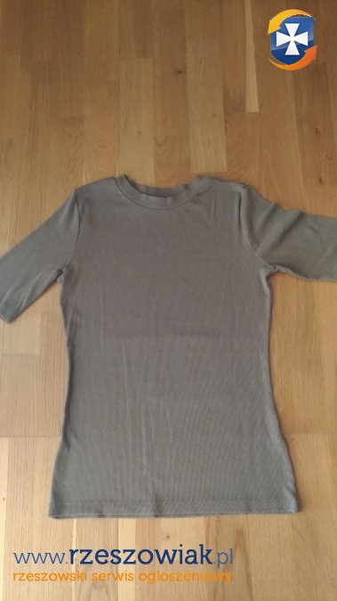 Bluzka/koszulka/ EVA MiNGE/, NOWA r.M, rękaw do łokci, faktura; pionowe prążki, kolor ghaki.