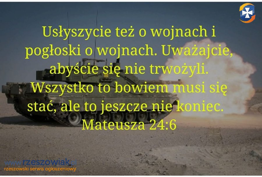 Bóg mówi o końcu świata:Usłyszycie też o wojnach i pogłoski o wojnach. Uważajcie, abyście się nie bali. Wszystko to bowiem musi się stać ale to jeszcze nie koniec.Powstanie bowiem naród przeciwko narodowi i królestwo przeciwko królestwu i będzie głód zaraza i trzęsienia ziemi miejscami. Lecz to wszystko jest początkiem boleści. Ludzie bowiem będą samolubni kochać pieniądze zarozumiali pyszni wulgarni będą rodziców ignorować niewdzięczni bezbożni bez serca oszczercy niepohamowani bez uczuć ludzkich nieprzychylni. Zdrajcy, porywczy, nadęci, miłujący bardziej rozkosze niż Boga. Ewangelia Mateusza 24 i 2 List do Tymoteusza 3. Jeśli chcesz porozmawiać to zapraszam do kontaktu mailowego [użyj poniższego formularza kontaktowego]