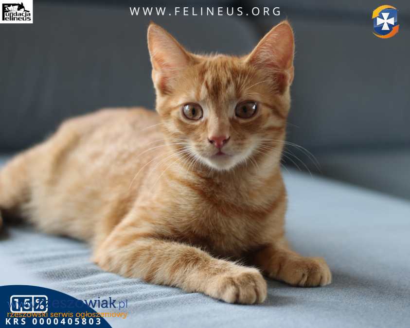 Bongo to słodki łobuz urodzony w maju 2025 roku. Jest ciekawski i skory do zabawy. Szaleje z innymi maluchami a opiekunów zaczepia łapką. Mile widziany dla niego byłby dom z którymś z rodzeństwa lub z innymi młodymi kotami, które będą chciały się bawić.