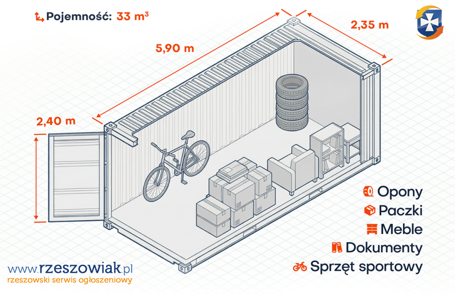 13,8 m2- przystosowane do przechowywania rzeczy wielkogabarytowych, np. mebli podczas remontu czy przeprowadzki, a także sprzętów