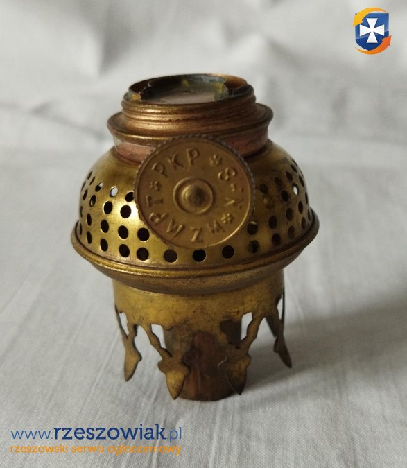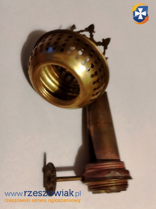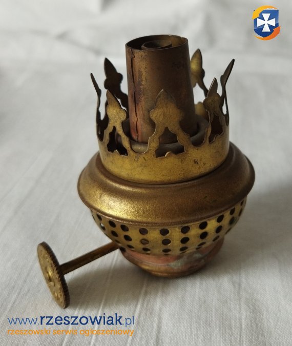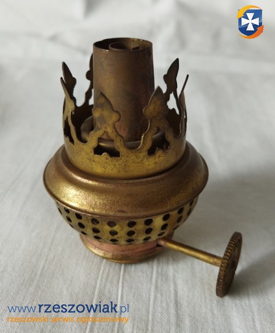 Brenner mosiężny palnik do lampy naftowej. Stan widoczny na fotografiach. Brenner nie był używany. Zachowany w pierwotnym, bardzo dobrym stanie. Nie był czyszczony ani poddany renowacji. Mechanizm jest sprawny.