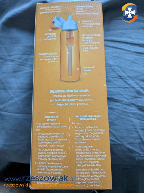 Butelka filtrująca Dafi Solid o pojemności 0,7 l w kolorze pomarańczowym, wykonana z trytanu. Nowy, oryginalnie zapakowany produkt.
