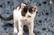 CAŁKA - biało czarna maleńka kotka urodzona w lipcu 2025, która zaznała na starcie problemów ze wzrokiem, spowodowanych nieleczonym kocim katarem.