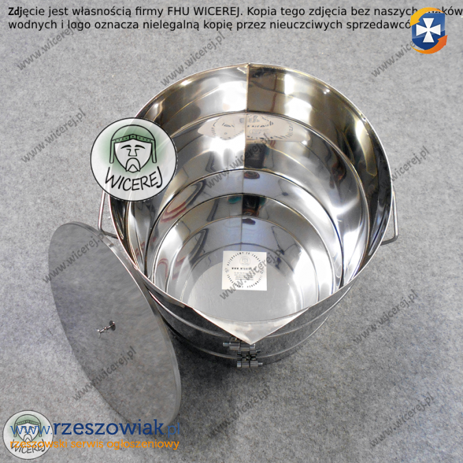 zamykaną nierdzewną pokrywę oraz uchwyty do przenoszenia i wygodnego zlewania miodu.