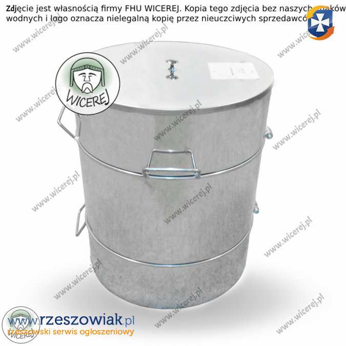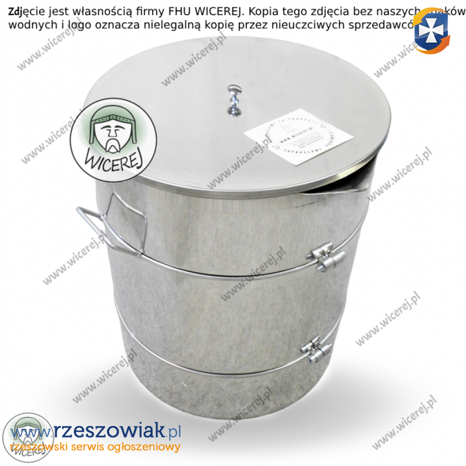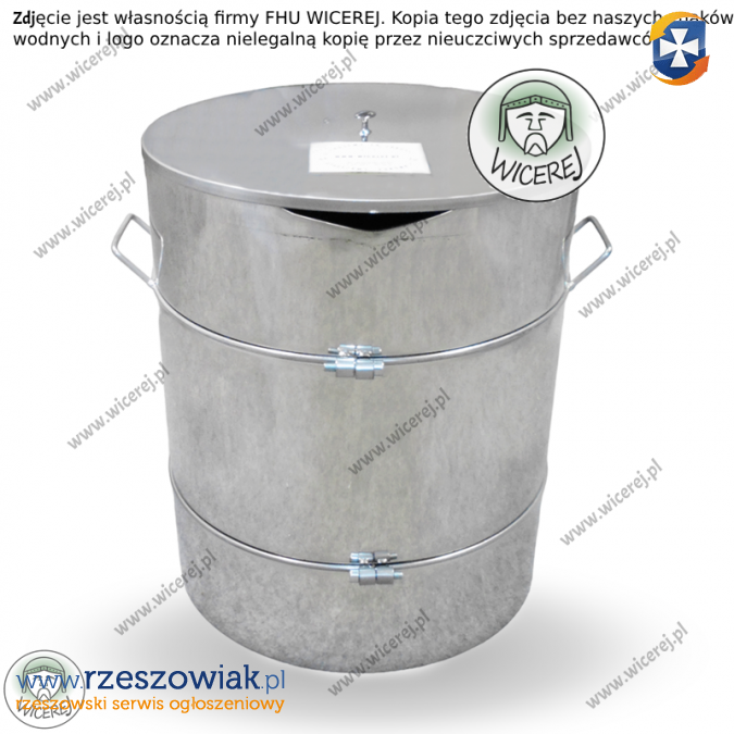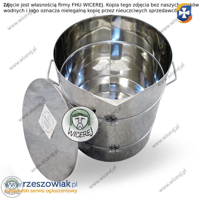 zamykaną nierdzewną pokrywę oraz uchwyty do przenoszenia i wygodnego zlewania miodu.