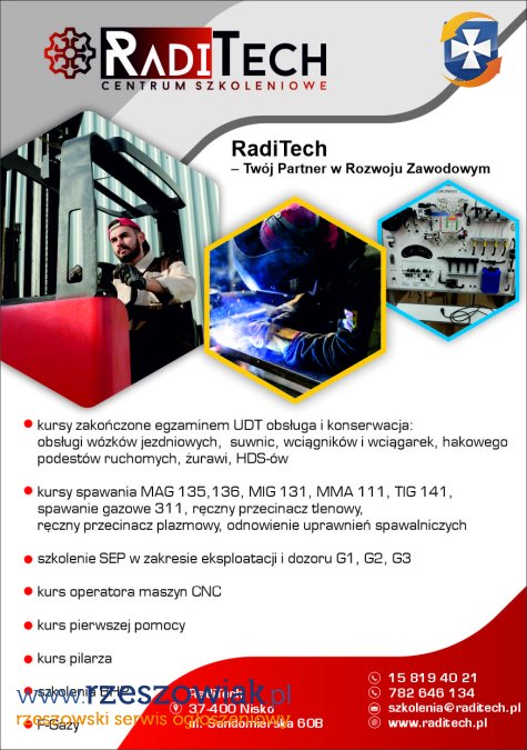 Centrum Szkoleniowe RadiTech w Nisku zaprasza na szkolenia zawodowe:
