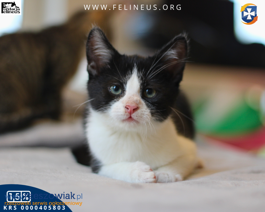 Charlie â kocurek urodzony końcem sierpnia 2025 roku. Charlie ma dwie kocie twarze. Kocurek jest kocim dżentelmenem w garniaku, drzwi może nie potrafi otwierać, ale za to na pewno przybiegnie, gdy w drzwiach stanie człowiek, żeby się przytulić. A gdy już zapewni dobry humor swoim mruczeniem, zmienia swoją posadę. âPo godzinachâ oddaje się swojej pasji â wspinaczce wysokodrapakowej lub też wysokoludzkiej (dresy, leginnsy, sweter, nie ma znaczenia, w mgnieniu oka pojawia się na rękach człowieka lub na ramieniu). Charlie to czarujący i kochany koci maluch. Chętnie zamieszka w nowym domu wraz z rodzeństwem lub też w domu, gdzie już jest inny kot, jednak nie jest to warunek konieczny. Kocurek szuka domu niewychodzącego z zabezpieczonymi oknami i jeśli jest to balkonem.