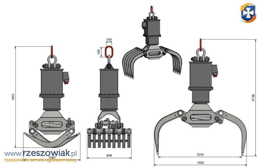 Chwytak do drewna do suwnicy umożliwia szybki załadunek drewna. Chwytak może być wykonany w wersji 4 lub 8 pazurowej.