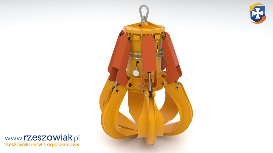 Chwytak pazurowy polipowy do suwnicy 5 pazurowy. System elektrohydrauliczny umożliwia montaż na dowolnej suwnicy dźwigowej ramowej.
