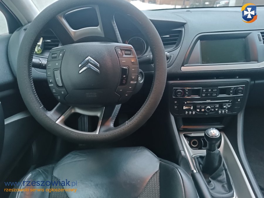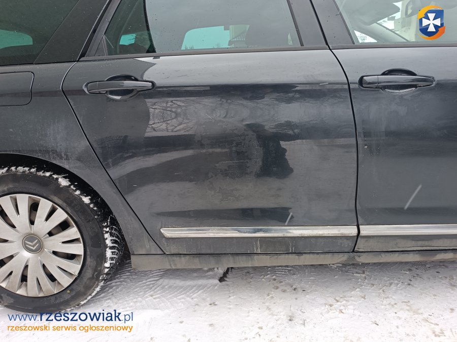 Citroen C5 kombi, silnik 1.6 HDI diesel, 82 kW. Wyposażenie: klimatyzacja, czujniki parkowania przód i tył, kierownica wielofunkcyjna, radio z zestawem głośnomówiącym, elektryczne szyby przód i tył, tempomat. Opony wielosezonowe 2025r. Zarysowane prawe tylne drzwi - widoczne na zdjęciu. Przegląd ważny do 05.2026. Data rejestracji w kraju 2017r.