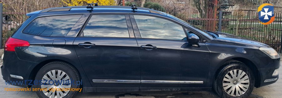 Citroen C5 kombi, silnik 1.6 HDI diesel, 82 kW. Wyposażenie: klimatyzacja, czujniki parkowania przód i tył, hak, kierownica wielofunkcyjna, radio z zestawem głośnomówiącym, elektryczne szyby przód i tył, tempomat. Opony wielosezonowe 2025r. Zarysowane prawe tylne drzwi - widoczne na zdjęciu. Przegląd ważny do 05.2026. Data rejestracji w kraju 2017r.