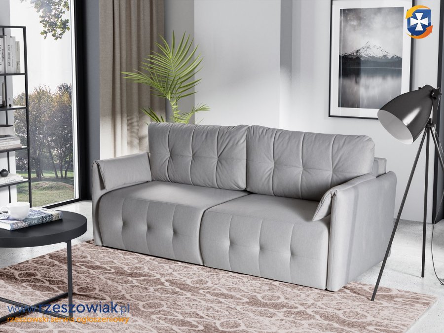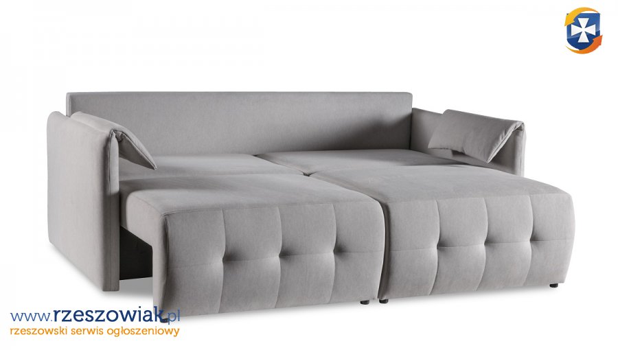 Sofa posiada pojemnik na pościel. Dodatkowym atutem mebla jest wspomaganie otwierania (tzw. automat).