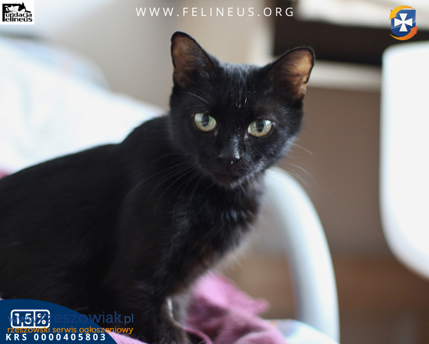 Czarna jest wykastrowana, po profilaktyce p/pasożytniczej, testowana (FeLV/FIV negatywne). W każdej chwili może zmienić dom.