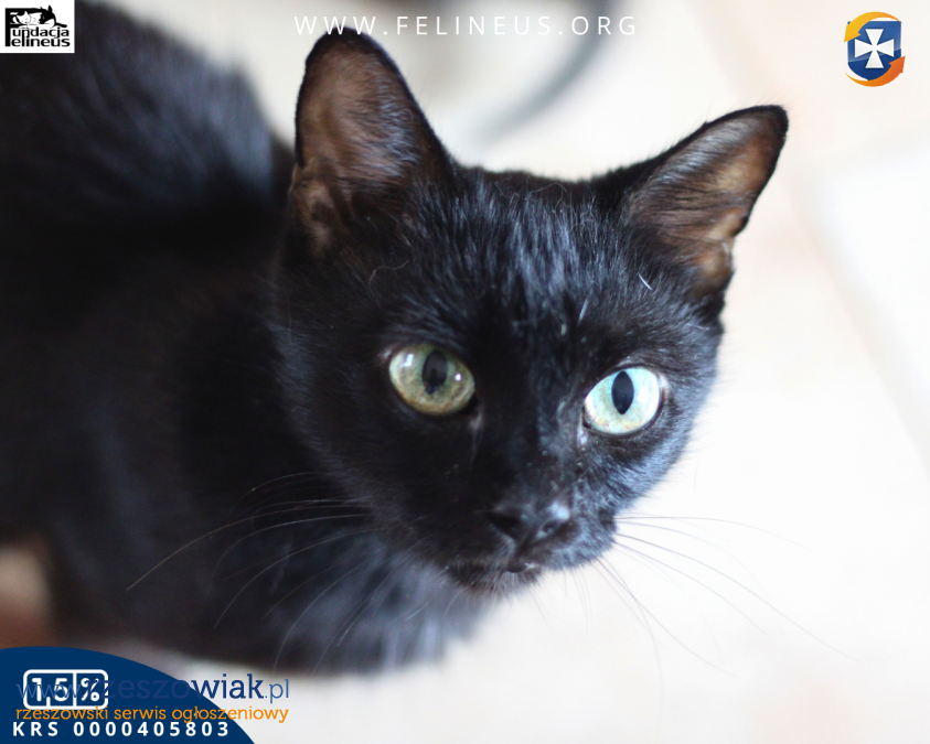 Czarna - można powiedzieć - kot idealny. Urodzona w 2022 roku. Piękna i dostojna, przyjazna ale nie nachalna. Lubi być blisko człowieka, ale nie narzuca mu się swoją obecnością. Za to nie pogardzi przytuleniem czy głaskaniem. A za surowe mięsko zrobi wszystko. Odnajdzie się w domu z innym kotem, ale jedynaczką też może być.