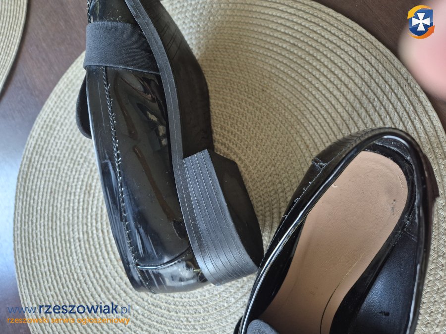 Czarne mokasyny ZARA w rozmiarze 38, mało używane (co widać po wnętrzu buta i podeszwach), mało widoczne w naturze otarcia po wewnętrznej stronie. Wygodne i eleganckie obuwie, idealne na co dzień.