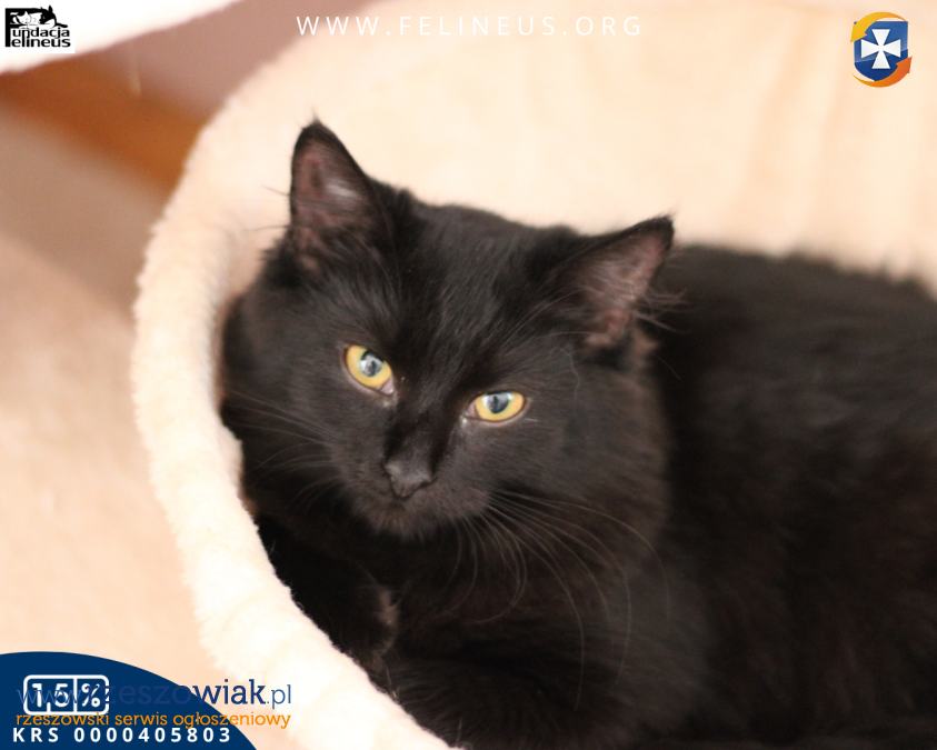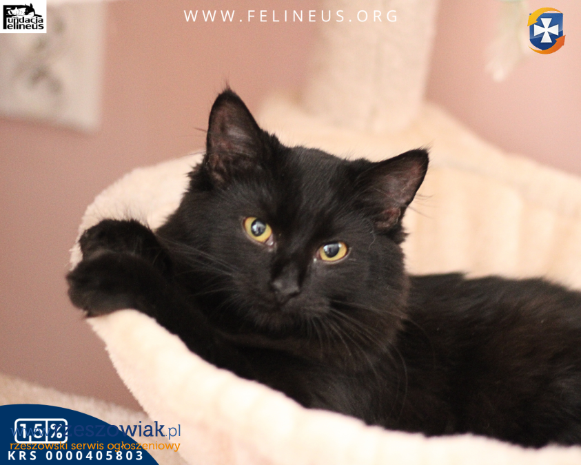 Czarusia - kotka urodzona w lipcu 2025. Imię idealnie odwzorowuje jej koci charakter. Czarusia to kocia dama, pełna wdzięku, spokoju, delikatności i opanowania. Chętnie usiądzie na kanapie i będzie przyglądać się wszystkim dookoła. Od czasu do czasu gdy w kociej damie obudzi się to drzemiące kocie dziecko zaczyna bieganiny z rodzeństwem czy też domaga się zabawy wędką z człowiekiem.