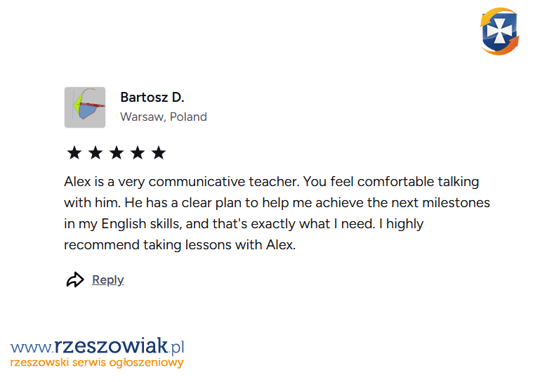 Cześć! Nazywam się Alex i jestem doświadczonym nauczycielem ze Stanów Zjednoczonych. Angielski to mój język ojczysty i nie mówię po polsku.