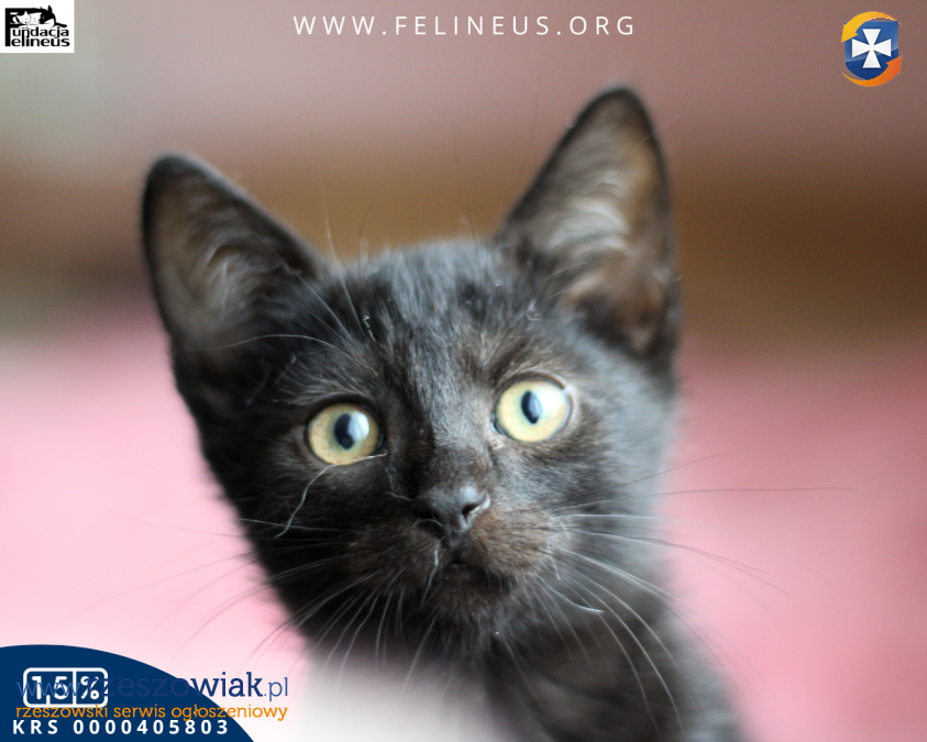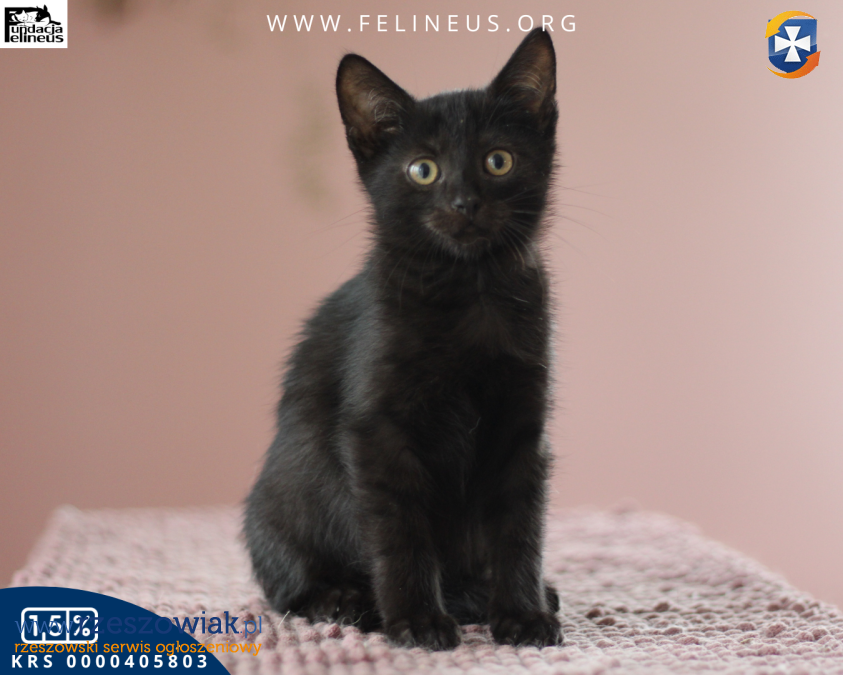 Czorcik - kocurek urodzony w lipcu 2025. Czorcik to urodzony koci model. Z ogromną przyjemnością pozuje przed aparatem. Grzecznie siedzi i jedynie zmienia pozy, aby jeszcze lepiej zaprezentować swoje piękne, czarne, lśniące futerko. Czorcik jest pogodnym i wesołym kocim dzieciakiem, który będzie wspaniałym członkiem rodziny. Chętnie zamieszka w domu z innym kotem lub zabierze do nowego domu brata lub siostrę.