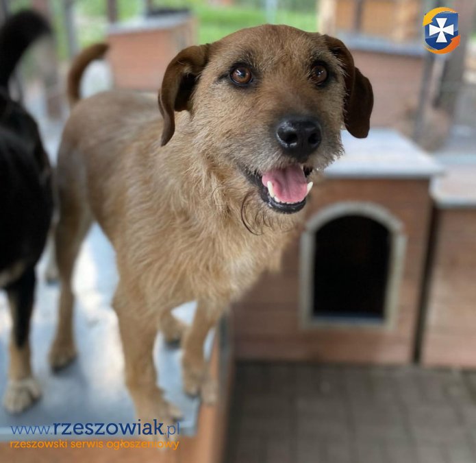 Fuks jest młodym, energicznym, o nietypowej urodzie psem (ma szorstki włos).