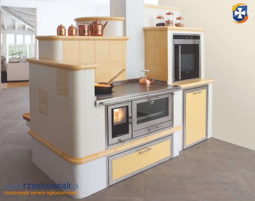 Żywy ogień pod płytą jest niezbędny do przygotowania najsmakowitszych dań z zachowaniem wartości zdrowotnych. Gospodynie, które nie mają tradycyjnego pieca kuchennego, nawet nie biorą się za przyrządzanie wielu potraw, gdyż na kuchence gazowej lub elektrycznej, choćby nie wiadomo jak się starały, nie są w stanie uzyskać satysfakcjonujących efektów kulinarnych. Na płycie pieca kuchennego bardzo łatwo jest wyczarować przepyszne potrawy, nawet bez szczególnego starania się. Prawdziwy ogień pod płytą zrobi to za nas i zachwyci podniebienia domowników. A gdy kuchnia będzie miała widoczny ogień w palenisku, nie będziemy w stanie mu się oprzeć i na dłużej pozostaniemy w aneksie jadalnym, zajadając się smakowitościami. Piec kuchenny z ogrzewaczem i ciepłym przypieckiem (napieckiem lub zapieckiem) wypromieniowuje jeszcze długo - po skończeniu palenia - przyjazne ciepło dla człowieka. Może posiadać wężownicę do przygotowywania ciepłej wody użytkowej. Zabudowa kuchni może być rozszerzona o płytę indukcyjną lub ceramiczną, kuchenkę gazową plus dodatkowy piekarnik elektryczny. W obszernych izbach budowane są kompleksy kaflowe, będące centrami kulinarno - ogrzewczymi, w skład których wchodzi piec kuchenny, piec do pizzy, pokojowy piec kaflowy z ogrzewanym przypieckiem i ogrzewana platforma do spania. Jest to samowystarczalny zestaw, obywający się bez elektryczności i niezależny od kaprysów pogody. Nawet gdy w zimie nas zasypie, zabraknie prądu, to mając na wyposażeniu tak wypasiony zestaw, możemy przez wiele dni - w przyjaznym cieple - smakowicie biesiadować i wyśmienicie się wysypiać. Gdy dla domów, uzależnionych od mediów zewnętrznych, taka sytuacja jest zawsze tragedią, dla nas ... będzie wyśmienitą zabawą i przygodą. Kuchnia kaflowa jest nieodzowna w gospodarstwach agroturystycznych, pensjonatach, rybakówkach, domach rekreacyjnych użytkowanych okresowo. Będąc opalana odnawialnymi źródłami energii, jest gwarancją ekologicznego bezpieczeństwa energetycznego i kulinarnego każdej rodziny. Zmniejsza zależność od zewnętrznych dostaw surowców energetycznych. Opał łatwo dostępny z lokalnych lasów.