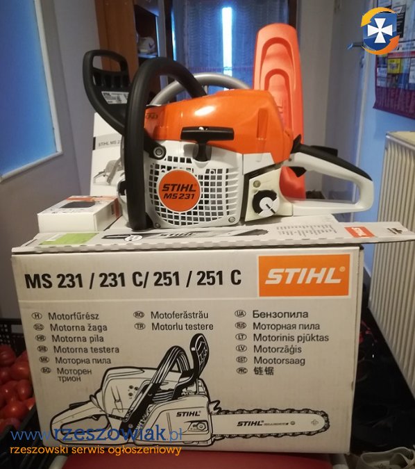 Piła łańcuchowa STIHL MS 231 o mocy 2,7 KM. Piła jest nowa, nie uruchomiana, pochodzi z Polskiej dystrybucji, kupiona w sklepie Dealera STIHL w Polsce. Posiadam do sprzedaży cały komplet z prowadnicą, łańcuchem, osłoną prowadnicy, kluczami, instrukcją obsługi w języku Polskim. Paragon do wglądu dla ewentualnego kupca. Więcej informacji udzielę przez telefon, na SMS i Wiadomości nie odpowiadam.