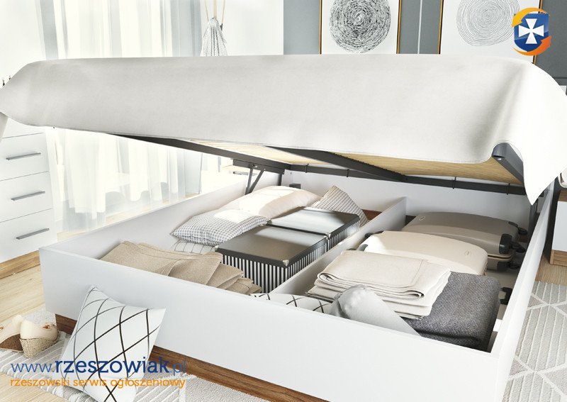 Zaletą łóżka jest duża przestrzeń do przechowywania, która znajduje się pod rusztem.