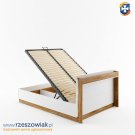 Zalecamy zakup materaca 160x200 cm. Łóżko wykonane jest z płyty laminowanej w kolorze białym matowym w połączeniu z dębowym stirlingiem.