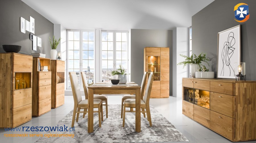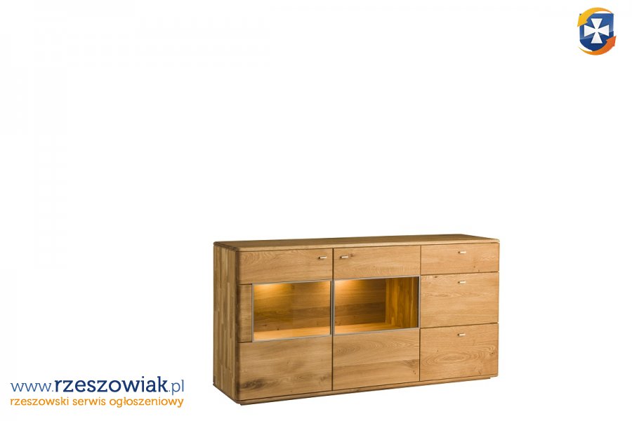 DENVER Salon Komoda duża TYP 48 Komoda duża 2 drzwiowa i z 3 szufladami.Oświetlenie opcjonalnie. Meble dostępne w opcji kolorystycznej - olej natura. Meble wykonane z następujących materiałów: - korpus: masyw dąb - fronty: masyw dąb sękaty deska - wykończenie: olej natura Front i korpus szczotkowany. Meble fabrycznie zmontowane. Drewno jest jak książka, w której zapisano historię drzewa. W rysunku słojów, ich zawirowaniach, sękach i przebarwieniach możemy odnaleźć promienie słońca, powiew wiatru, ożywcze krople deszczu, ślady powodzi i suszy. Drewno dębowe, z którego zbudowana jest w całości kolekcja Denver. W jej skład wchodzą witryny, komody, szafki RTV, stół i krzesła. Dzięki temu, przy ich pomocy, możemy urządzić pokój dzienny lub jadalnię. Denver występuje w kolorze dębu naturalnego oraz dębu palonego niektóre bryły.